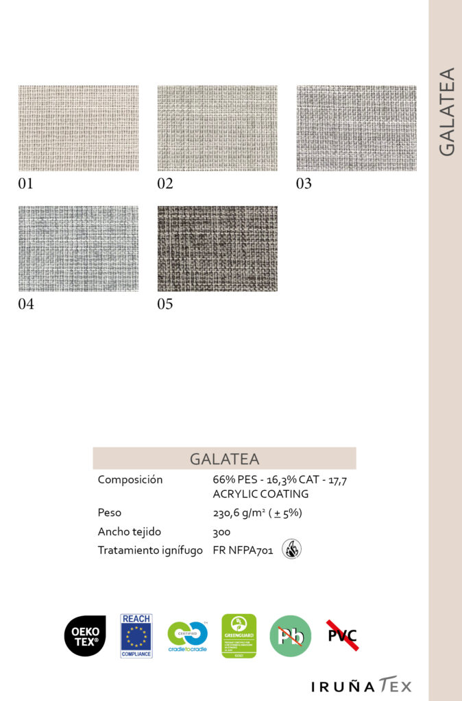 Ficha técnica: GALATEA Galatea sutileza del Lino con gran transparencia. Tejido Galatea, Colección ZEN Ficha Galatea