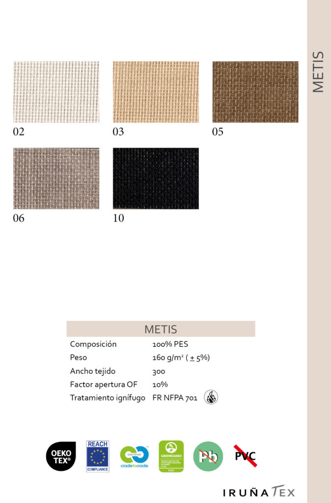 Ficha técnica: METIS Metis sutileza del Lino con gran transparencia. Tejido Metis, Colección ZEN Ficha Metis